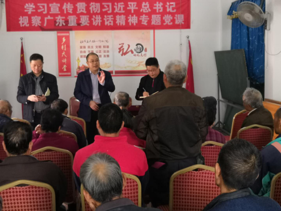 21日上午,清新区委常委、区纪委书记、区监委主任欧阳振前往石潭镇东安村讲党课。他与村民相聚一堂,观看新闻视频,传达学习习近平总书记视察广东重要讲话精神。