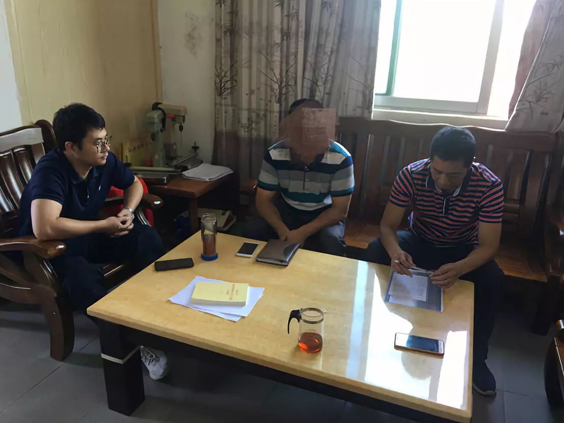 图为三坑镇纪委工作人员为黎某(中间)进行回访教育。