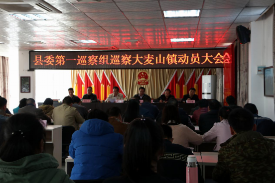 图为县委第一巡察组27日下午在大麦山镇召开巡察动员会