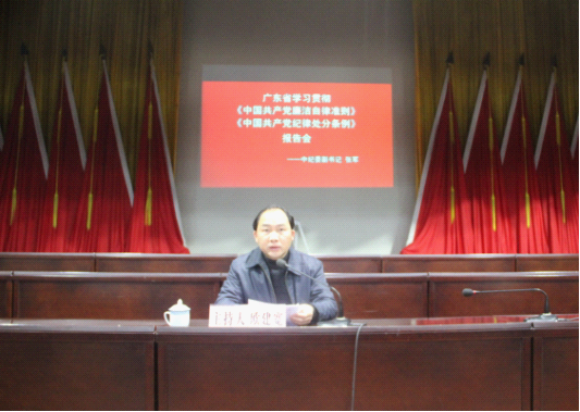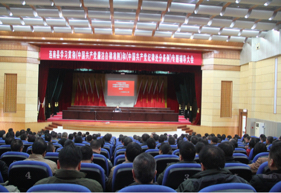 11月11日,连南县委组织县四套班子领导,县直及省市驻连南副科以上单位、各镇党政主要负责人等,收看收听了中纪委副书记张军的专题报告会。此外,为帮助广大党员领会、掌握好中纪委关于两项法规的权威解读,连南县纪委将学习对象扩大到全县各单位、各镇党政领导班子成员和村委书记,专门组织观看学习张军的专题报告录像视频。