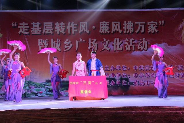 据了解,英德市纪委从4月开始开展为期5个月的“走基层转作风•廉风拂万家”廉洁文化下乡活动。此次廉洁文化演出活动,将轮流到该市24个镇(街),市直机关各系统进行巡演。节目以独唱、舞蹈、小品、快板、采茶小戏、器乐串烧等文艺形式,围绕有关农村“三资”监管、三级服务平台、惠民政策、提升服务效能意识等内容,向党员干部和广大群众广泛宣传当前党风廉政建设形势,宣传中央、省、市有关反腐倡廉政策措施及党员干部廉洁自律规定,使廉洁的清风吹进人心。