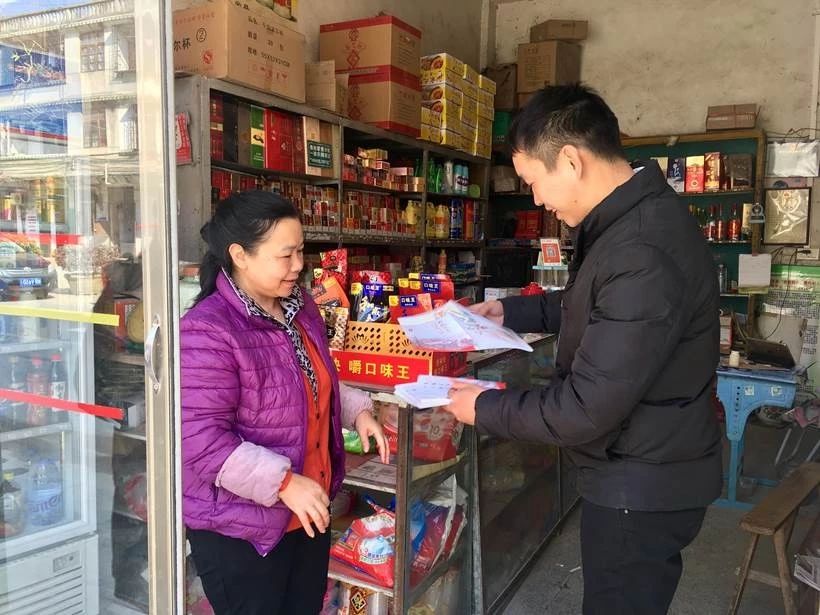 阳山县纪检监察干部到沿街商铺向群众派发宣传折页