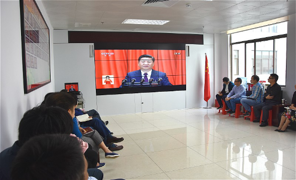 图二:市纪委组织干部职工集中观看党的十九大开幕会现场