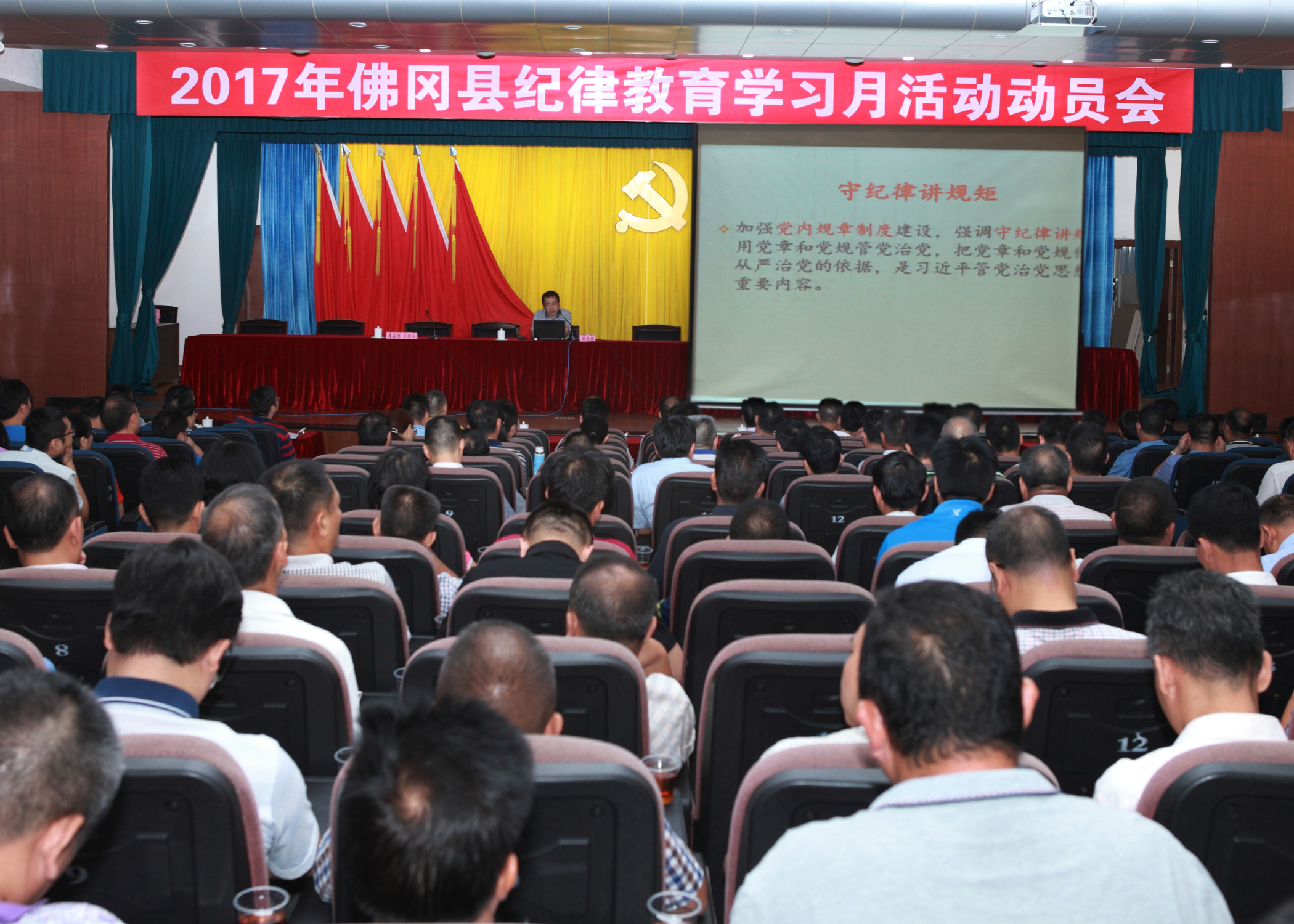 8月11日,佛冈县召开2017年纪律教育学习月活动动员会,全县副科以上领导干部、县纪检监察机关全体干部、各村(居)负责人共400多人参加了会议。县委常委、县纪委书记龙志勇主持会议。