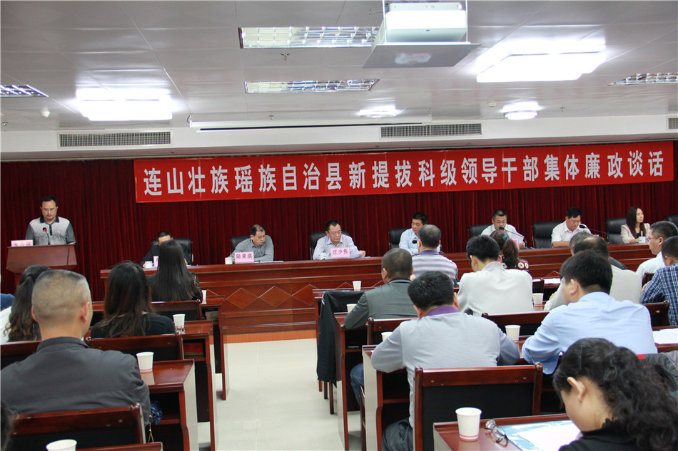 连山开展新提拔科级领导干部集体廉政谈话活动,干部及家属一起上廉课