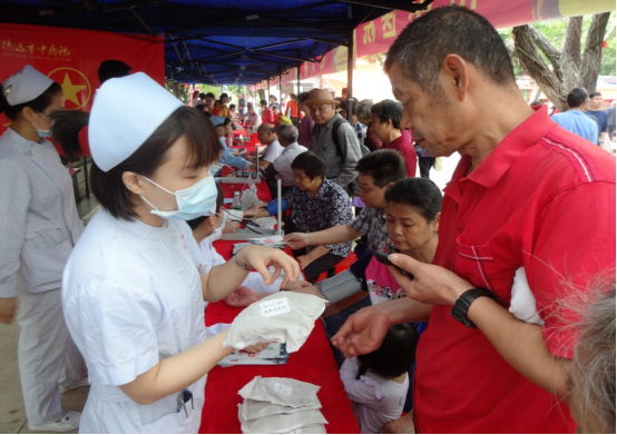 上午,在医院党委委员、团委书记、院办主任廖明炜以及医院急诊科“广东省青年文明号”号长刘雪贞的带领下,党员、团员医疗志愿者一行7人,将“健康直通车”开进中山公园广场志愿服务集市,为387名群众开展中医体质辨识、中医“治未病”诊疗、测量血压等诊疗活动,并为群众发放该院印制的健康教育宣传画册《流感预防》、《健康素养66条》、《小儿春季腹泻预防》、《珍爱生命,拒绝毒品》等书籍445份,送出价值4200元的中药奄包一批。