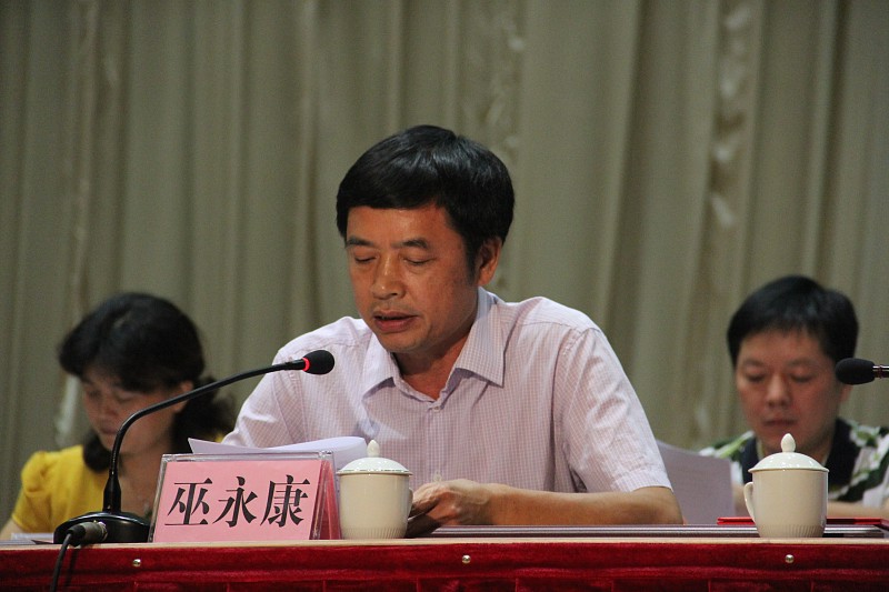 图为英德市委副书记巫永康在宣读表彰抗击“8.16”特大洪灾先进集体和先进个人的决定