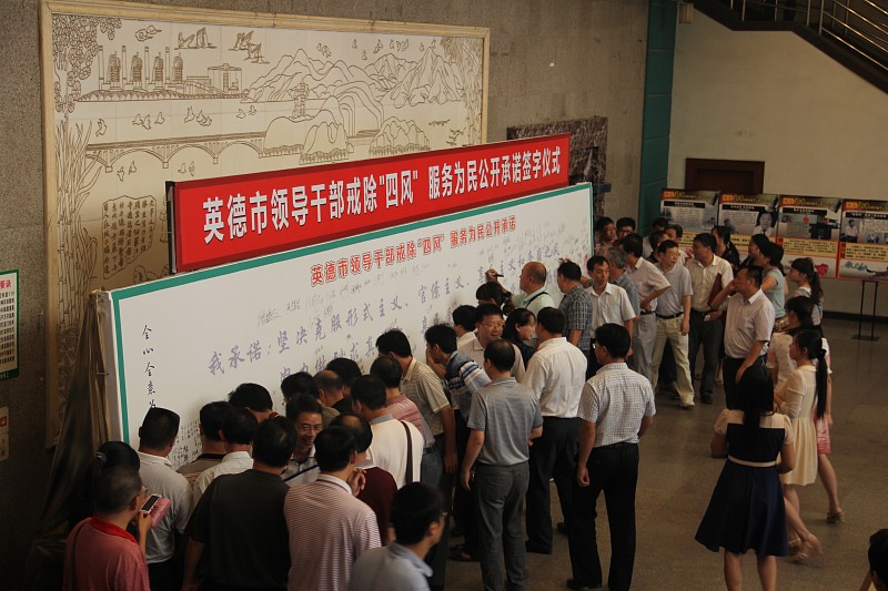 图为举行“戒除‘四风’,服务为民”承诺签字仪式现场