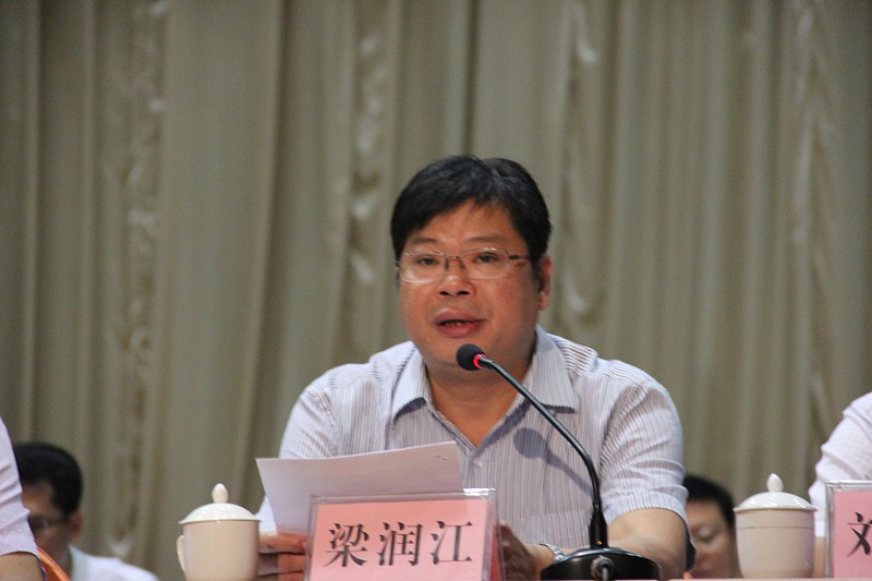 图为英德市委常委、纪委书记梁润江在会上通报作风突出问题和违纪违法10宗典型案例