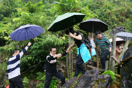 登山过程中,纪检监察干部相互帮助,相互拉扶。