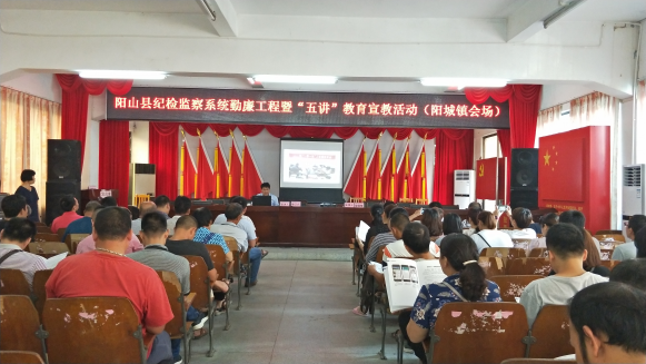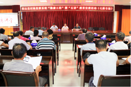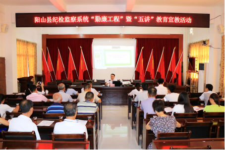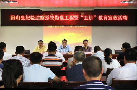 根据《阳山县“勤廉工程”暨“五讲”教育活动实施方案》,县纪委监委成立了9个宣教小组,由班子成员分别任组长和主讲人,从7月5日起分赴各乡镇开展宣讲。本轮宣讲的对象是全县167个村级勤廉监督室的501名勤廉监督员。他们均是在今年4月,由各乡镇按照市纪委监委出台的新标准选拔配备出来的,大部分是新生力量。