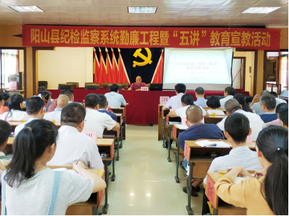 为全面提升新任村级勤廉监督员队伍整体素质,力促“勤廉工程”深入推进,开创农村基层党风廉政建设新局面,阳山县纪委监委筹划开展了为期一个多月的“勤廉工程”暨“五讲”教育活动。作为活动重要内容之一,主题为“勤廉工程营清风·‘五讲’教育铸铁魂”的宣讲活动于日前圆满结束,达到全县13个乡镇全覆盖。