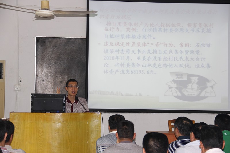 图二:市纪委常委杨师耀在给新任村(社区)支书、主任进行廉政法规培训