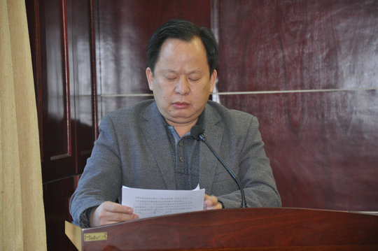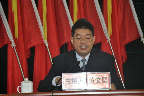 图为清新区委常委、区纪委书记黄文坚主持会议