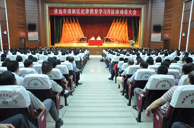 12日,清远市清新区召开全区纪律教育学习月活动动员大会,区四套班子领导成员;区纪委班子成员,区纪委各室组负责人;各镇班子成员、纪委专职副书记;区各单位副科以上干部共540人参加。区委常委、纪委书记黄文坚主持会议,区委书记、区人大常委会主任郑小燕同志作动员讲话。