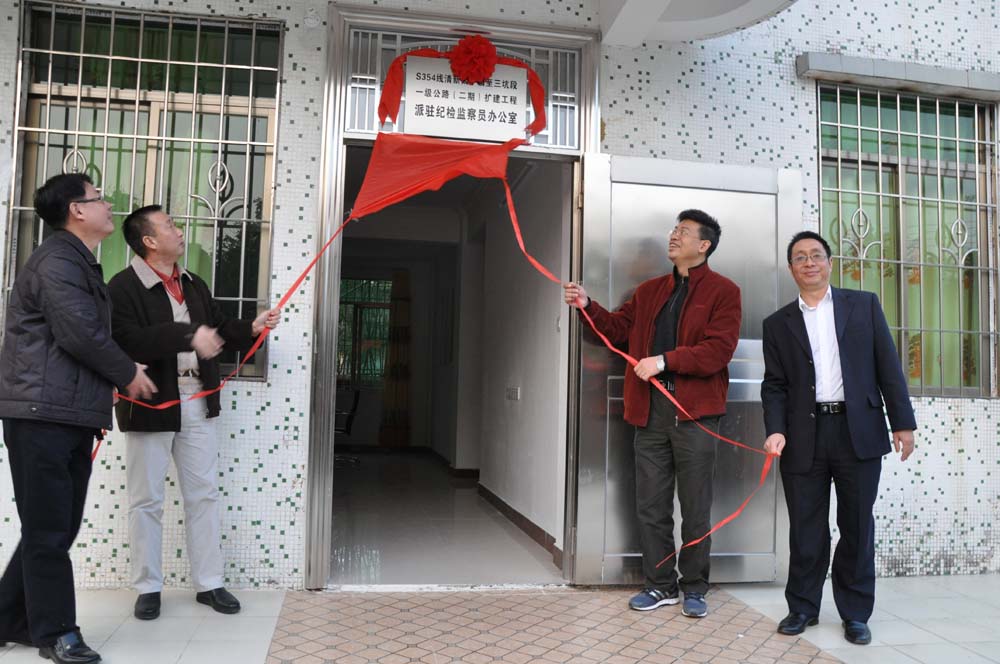 图为清西大道(二期)扩建工程派驻纪检监察员办公室揭牌