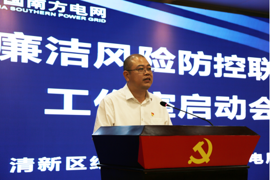9月25日上午,清新区纪委监委与区供电局共建的清新区首个廉洁风险防控联合工作室正式揭牌成立。清新区委常委、区纪委书记、区监委会主任欧阳振,清新区纪委副书记、监委副主任唐宝通,清远供电局党委副书记郭立增,清新区供电局党委书记、执行董事陈朝新出席了揭牌仪式。