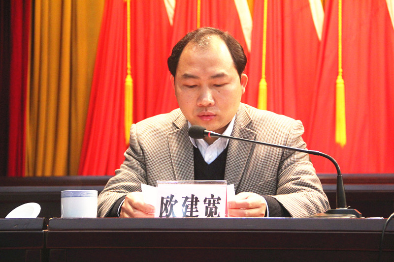 图为连南县委常委、县纪委书记欧建宽总结去年工作,部署2014年反腐倡廉建设工作任务