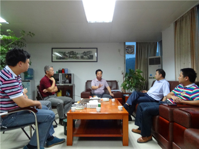 图为:韦书记听取飞来峡镇领导强台风“天兔”防御工作情况汇报