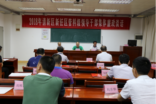 今年以来,清新区不断探索加强干部教育管理监督的有效方式,着眼于增强任前廉政谈话的针对性和实效性,实行任前廉政谈话“1+X”模式,即一场廉政谈话、多项廉政活动模式。为新任科级领导干部拧紧“纪律”安全阀,增强廉洁自律意识。