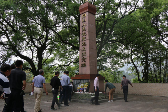 为缅怀先烈,传承革命精神,培育和践行社会主义核心价值观,4月3日上午,在县纪检监察党支部书记、县纪委副书记、监委副主任何际平的率领下,县纪委监委党员干部前往小江镇下坪村,与县委组织部党员干部一道开展“不忘初心跟党走”主题党日活动,集体参观了阳山人民武装起义纪念馆,在纪念碑前举行缅怀先烈和重温入党誓词活动。县委常委、组织部长刘沁汀出席活动并领誓。