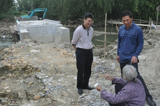 区纪委领导首先来到三坑镇竹楼村挂扶点与村干部进行座谈征求群众意见,并到由纪委牵头,区4个单位出资,正在修建的瓦窑村机耕桥工程现场检查施工进度。黄文坚书记还与路过的群众一对一、面对面进行征求意见,针对群众需要加快工程进度,方便群众出入的迫切要求,承诺五月份前修好大桥方便群众出行。