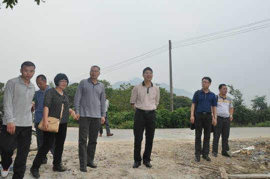 图为黄文坚(中)、唐宝通(右二)、罗小昌(左三)在三坑镇调研