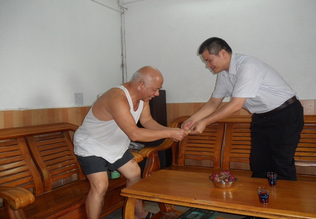 7月25日,清新区纪委常委、办公室主任苏雄伟在建军节前走访慰问本单位军转干部、退伍军人。 在军转干部(退休干部)潘灿棠等家中,苏雄伟都代表区纪委、监察局向退伍军人送去节日的祝福,询问他们目前的家庭情况、身体状况,了解他们的家庭生活情况,并送上慰问金。叮嘱老军人们要保重身体、积极生活,积极为纪检监察工作出谋划策,为清新经济社会发展作出更大的贡献。(清新区纪委宣教室)
