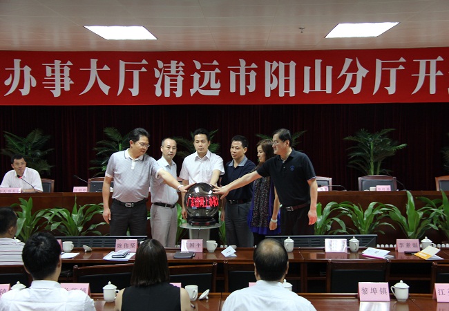 26日上午,广东省网上办事大厅清远市阳山分厅正式开通运行,阳山成为了清远全市第一个开通网上办事大厅的县,这标志着阳山电子政务建设迈上了一个新台阶。清远市纪委副书记甘伟雄、阳山县领导李欣、郑培基、江绍勇等出席开通启动仪式。县长李欣表示,网上办事大厅不仅是要“建起来”,关键是要“用起来”。全县将尽快把各乡镇、各单位可公开的办事事项都纳入到网上办事大厅,使网上办事大厅真正成为群众会用、爱用的服务平台,成为“惠民大厅”。