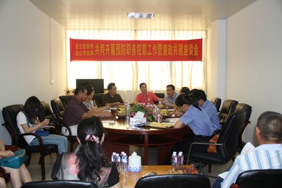 近日,应连山民政局邀请,连山检察院副检察长杨勇、副检察长韦先枚带领反贪局、反渎职侵权局、职务犯罪预防科干警到连山民政局召开《连山检察院、连山民政局共同开展职务犯罪工作暨廉政共建座谈会》,民政局局长及民政局全体干部职工参加了座谈会,座谈会由民政局局长吴小强主持。会上,民政局吴局长介绍了民政局各部门的工作职责和工作情况,以及各部门职务犯罪工作的防控点及预防措施;杨勇副检察长对民政工作中哪些方面容易引发职务犯罪及应当如何预防等方面作了重要介绍。整个座谈过程气氛热烈,其他参与座谈的民政局干部踊跃发言,持续近两个小时,民政局中层干部普遍反映希望检察机关多采取这种座谈的方式给大家上警示教育课。