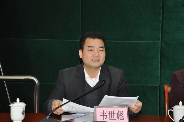 图为清新县委常委、县纪委书记韦世彪在会上讲话