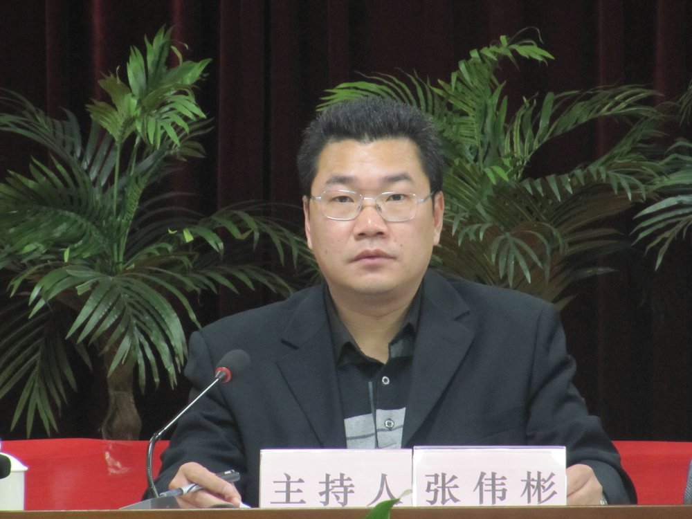 图为阳山县纪委副书记、监察局长张伟彬主持会议