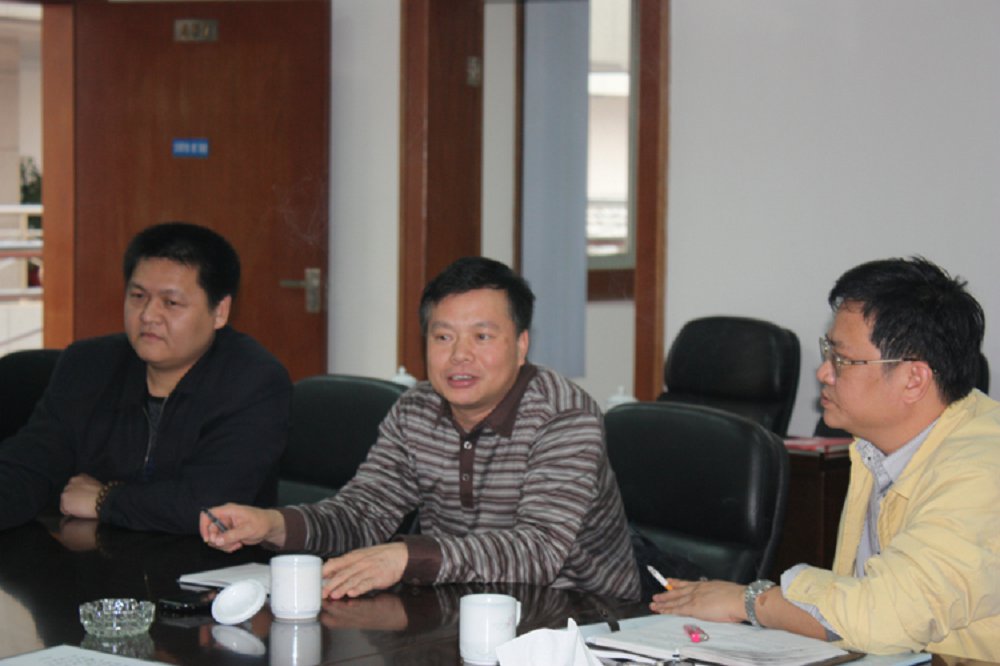 图为与会人员认真审阅工程设计方案