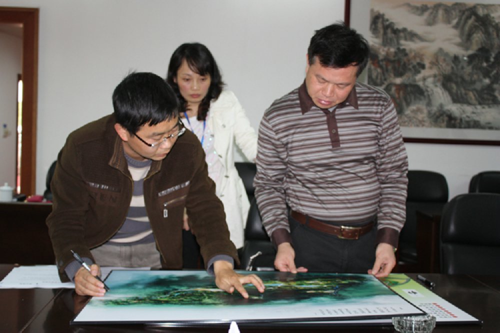 图为佛冈县委书记、县人大常委会主任李玉楷听取设计人员讲解