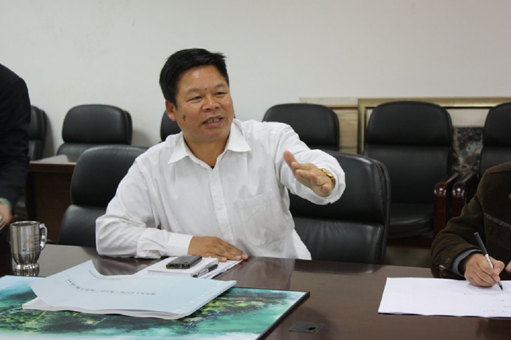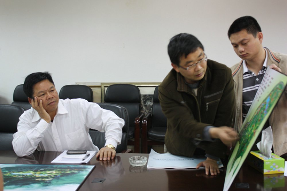 图为佛冈县委书记、县人大常委会主任李玉楷对设计方案进行点评
