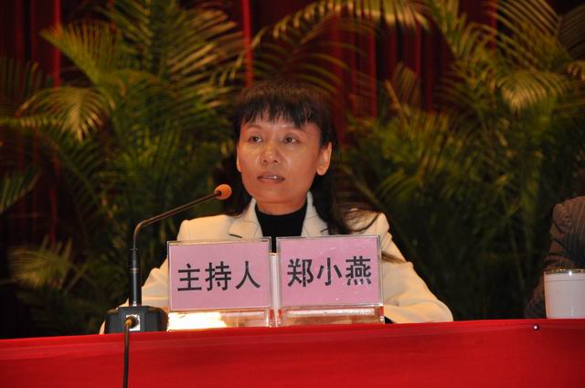 图为清新县委副书记、县长郑小燕主持会议