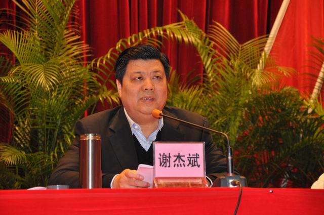 图为清新县委书记、县人大常委会主任谢杰斌在会上作重要讲话