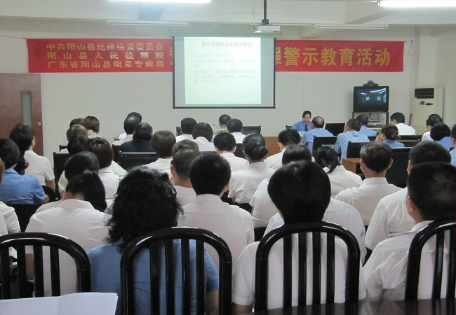 近日,阳山县纪委、县检察院应邀分别到县烟草专卖局、七拱镇政府开展预防职务犯罪法制宣传和警示教育活动。活动采取上法制课、播放警示教育片、现场宣传、发放宣传小册子、召开座谈会等形式进行。期间,县检察院干警分别为他们作了题为《强化规范经营、远离职务犯罪》、《预防职务犯罪 营造清正廉洁氛围》的法制专题讲座,讲座结合近年来县检察机关查办发生在大家身边的职务犯罪典型案件,深入浅出地分析和讲解了职务犯罪的概念、特点、成因、处罚及预防对策,引导他们切实加强政治思想学习,树立正确的世界观、人生观、价值观,解决好权力观、地位观、利益观的问题,正确行使自己的职权和履行自己的义务,廉洁奉公、勤政为民,做到自省、自警、自励,自觉抵制各种腐朽思想的侵蚀。