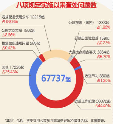 ●中纪委点名曝光3000余名违反八项规定官员——截至9月30日,2014年全国已查处37370件违反八项规定精神案件,涉及51235人,有15494人受处分。与去年同期相比,今年受党政纪处分人数翻了一倍。另外,中纪委在今年还充分利用官网平台,不间断地通报相关典型案件,已有超过3000名官员被指名道姓曝光。