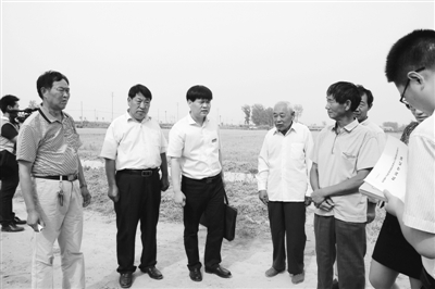 图为6月12日,徐保明(左三)与宿城区信访室工作人员到中扬镇耿桥村调查核实村民反映的问题线索。张威 摄