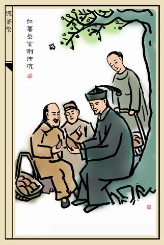 谢仲坑在平江三年,劳苦功高。为了纪念他,平江人民在县城南面水府庙的右边,建了一座“红薯县官祠”,谢仲坑的塑像中手拿红薯,神态慈祥,栩栩如生。