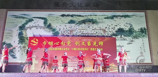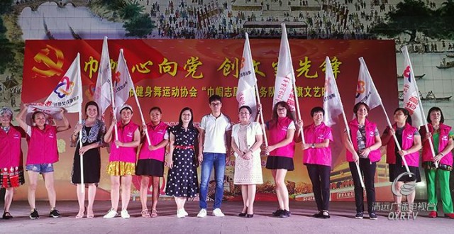 在市妇联的指导下,清远市健身舞运动协会在短短几个月时间里就组建了65支530多人的巾帼志愿者服务队;现在又成立了8支160人的扫黑除恶专项斗争巾帼志愿者宣传队,遍布清城、清新区的5个乡镇。晚会上,市妇联分别为“巾帼志愿者服务队”和“扫黑除恶专项斗争巾帼志愿者宣传队”授旗,并希望巾帼志愿服务队将创建全国文明城市、扫黑除恶专项斗争等重点工作结合起来,加大宣传。引导广大群众从“要我参与”转变为“我要参与”,为建设和谐清远、文明清远作出更大的贡献。