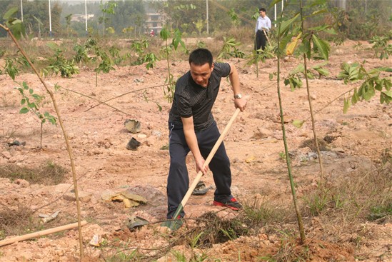 图为市纪委副书记、市监察局(预防腐败局)局长严名山(前右一)带领大家植树