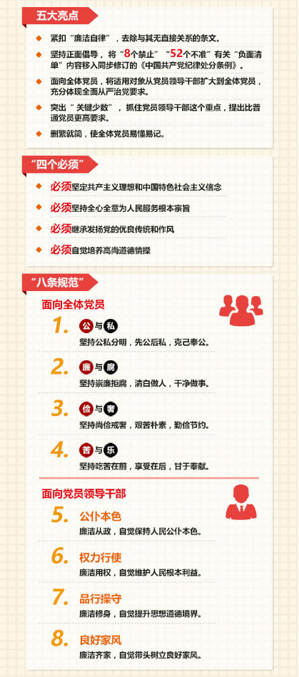 ●广东贯彻落实《廉洁自律准则》出新招——近日,省纪委、省委组织部、省监察厅、省国资委联合下发《关于促进国有企业领导人员廉洁从业禁止违规兼职的通知》,《通知》划出国有企业领导人员兼职行为的政策“红线”,明确了禁止安排亲属在兼职单位担任领导职务或担任重要敏感部门负责人,接受兼职单位违规转让、赠与的股份及其红利等十种违反纪律和规矩的行为。