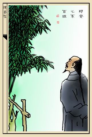 山东巡抚包括向郑板桥求书画。郑板桥画竹并题诗:“衙斋卧听萧萧竹,疑是民间疾苦声。些小吾曹州县吏,一枝一叶总关情。”表达了他时刻把百姓冷暖放在心上的情怀。