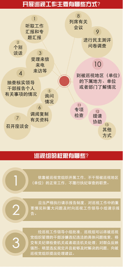 ●廉政提醒:党的中央和省、自治区、直辖市委员会实行巡视制度,建立专职巡视机构,对所管理的地方、部门、企事业单位党组织进行巡视监督,实现巡视全覆盖、全国一盘棋。开展巡视工作的党组织承担巡视工作的主体责任。——《中国共产党巡视工作条例》
