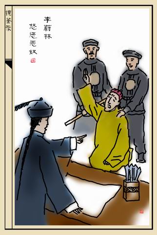 四川铜梁县有一家豪门的恶奴,倚仗主人的权势,横行乡里,鱼肉百姓,而历任知县都谄媚豪门,袒护恶奴。百姓们对那恶奴恨之入骨,却又无可奈何。李蔚林调到铜梁县任知县,一直不曾去拜访豪门。一次,那恶奴又横行不法,被人告到县衙,李蔚林发签提讯。恶奴心虚,托人给李蔚林送了二千两银子,李蔚林毫不推辞就收下了。左右人见李蔚林一反常态,公然受贿,都不知他的葫芦里卖的什么药。