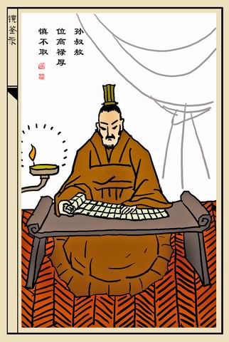 孙叔敖情操高尚,贡献很大,他始终牢记楚国父老的教导。他说:“吾三相楚而心愈卑,每益禄而施愈博,位滋尊而礼愈恭,是以不得罪于楚之士民也。”